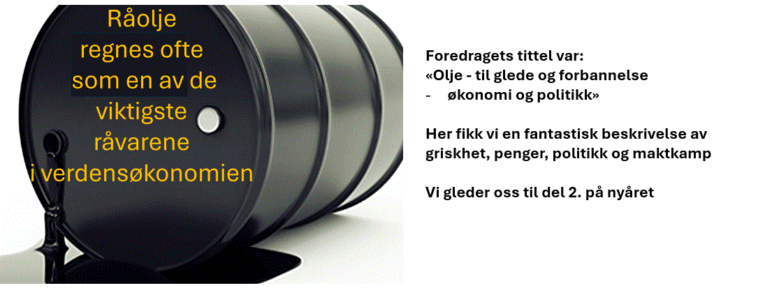 Tirsdag 9. desember fikk vi et meget interessant foredrag om olje: